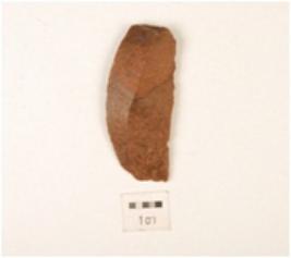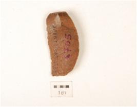 | Description / विवरण | Knife shaped blade, made on chert, ridge on dorsal surface, use wear edges, prominent bulb on ventral surface. |