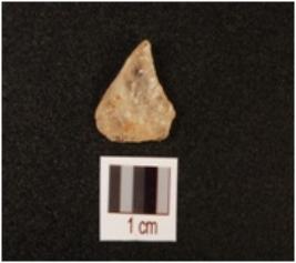 | Description / विवरण | A quartz flake with two flake scars on surface. |