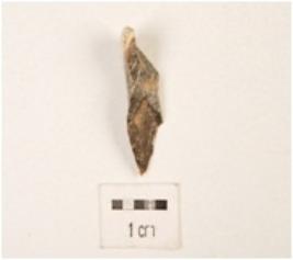 | Description / विवरण | A knife shaped blade made on chert, pointed tip, use wear edges, rough surface. |