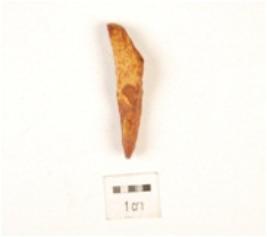 | Description / विवरण | Flake made on chert, flake scars on surface, uneven in shape, irregular edges. |
