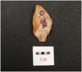 | Description / विवरण | A scraper with flake scars on dorsal, diffused bulb on ventral side and prepared platform. |