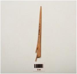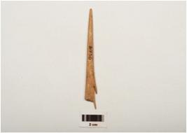 | Description / विवरण | Frag of bone harpoon with two barb with pointed end one side and another side damaged end. |