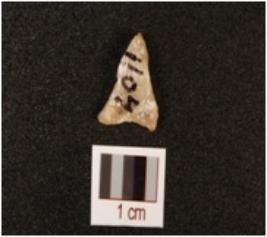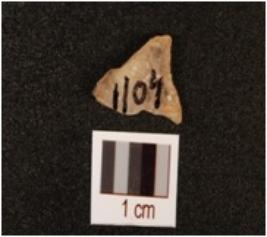 | Description / विवरण | A quartz flake with one scar on the surface. |
