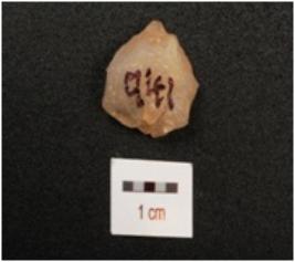 | Description / विवरण | A quartz scraper with diffused bulb on ventral side, use wear marks on working edge and flake scars on dorsal. |