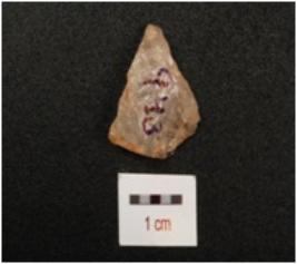 | Description / विवरण | A scraper with prominent bulb on ventral, use wear marks on cutting edge, flake scars on dorsal and smooth surface. |