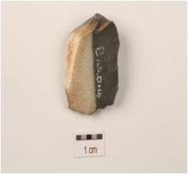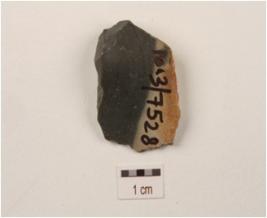 | Description / विवरण | A scraper made on chert with prominent bulb on ventral side, use wear marks on working edges, trapezoidal in section. |