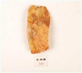 | Description / विवरण | Flake made on quartzite, irregular edges, flake scars on surface, uneven in shape. |