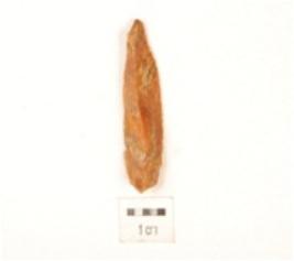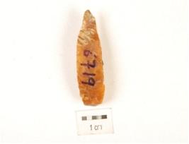 | Description / विवरण | Knife shaped blade, made on quartzite, ridge on dorsal surface, use wear edges, diffused bulb. |