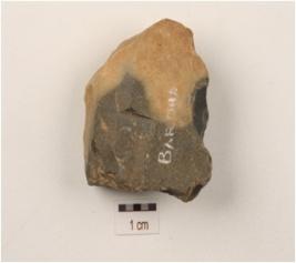 | Description / विवरण | A core made on chert, flake scars on surface, smooth surface, use wear marks on cutting edges. |