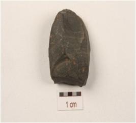 | Description / विवरण | A end struck flake made on chert, flake scars on surface, trapezoidal in section. |