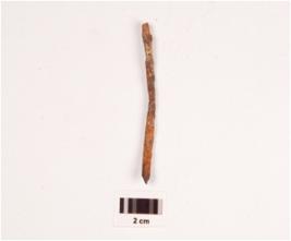 | Description / विवरण | A scraper with prominent bulb on ventral side, use- wear marks on working edge, flake scars on dorsal and smooth surface. |