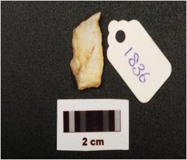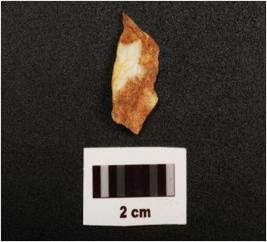 | Description / विवरण | A chert waste flake with irregularshaped, blade scars on the surface, distal end pointed and proximal end broad. |