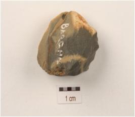 | Description / विवरण | A core made on chert, flake scars on surface, use wear marks on cutting edge. |
