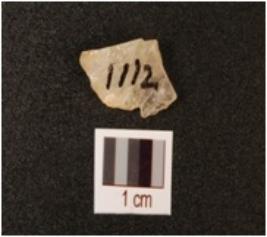 | Description / विवरण | A quartz flake with two flake scars on surface. |