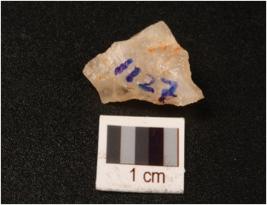 | Description / विवरण | A scraper made on quartz with smooth surface, used wear marks with working edge. |