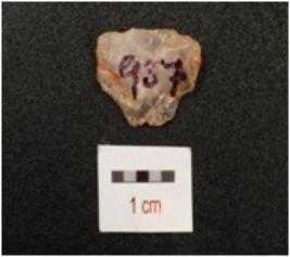 | Description / विवरण | A scraper with prominent bulb on ventral side, prepared platform, use wear marks on cutting edge and smooth surface. |