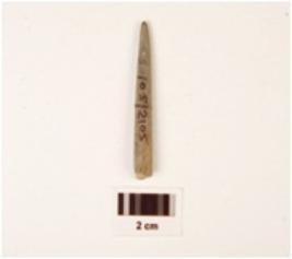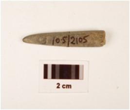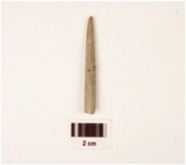 | Description / विवरण | A stone long point with polished surface, broken one end, other end pointed, grey in colour and circular in section. |