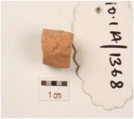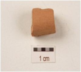 | Description / विवरण | Fragment of a handmade terracotta bangle, circular cross-section, chipped off surface, made with fine clayred sliped surface. |