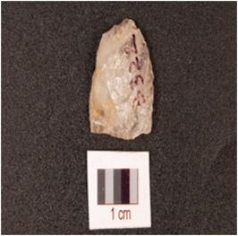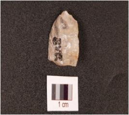 | Description / विवरण | A quartz end scraper, prepared platform, single ridge on dorsal surface, cross flake scars on both surface, diffused bulb on ventral diffused bulb on ventral surface, direct pressure technique. |