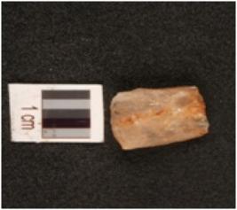 | Description / विवरण | Fragament of blade, made of quartz, sharp working edge on one side and chipped off surface. |
