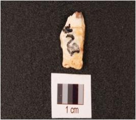 | Description / विवरण | A tiny fragment of a flake, visible cortex, unmodified, smooth surface. |