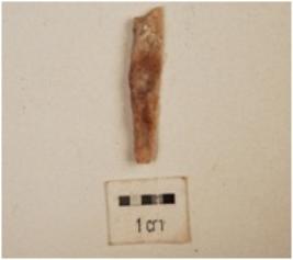 | Description / विवरण | A knife shaped blade made on chert, use wear edges, single ridged. |