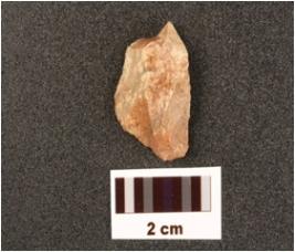 | Description / विवरण | Chert scraper, with striking platform, bulb absent, use-wear marks on working edge, flake scars on one side of surface. |