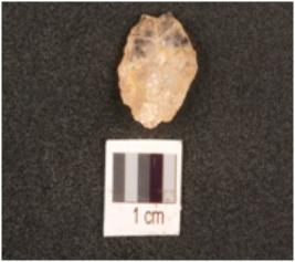 | Description / विवरण | Quartz side scraper with sharp working edge and flake scars on surface. |