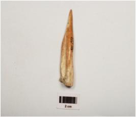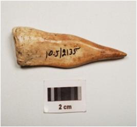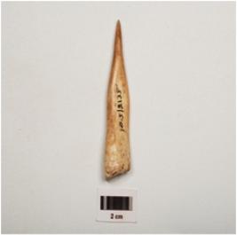 | Description / विवरण | A horn point, polished surface with a pointed end, thick and broad at other end and light brown in colour. |