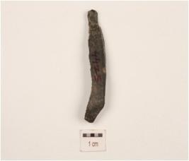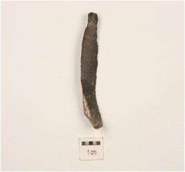| Description / विवरण | Parallel sided chert blade, diffused bulb with striking platform, curved distal end, one flake scar on dorsal surface, use-wear marks on both working edges. |