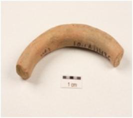| Description / विवरण | Fragment of handmade terracotta bangle,fine fabric, traces of black bands on red rough surface, square in cross-section. |