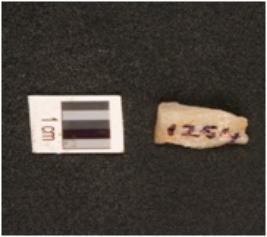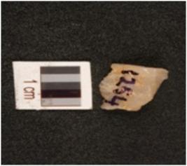 | Description / विवरण | Fragament of blade with sharp working edge on one side, triangular cross section and slightly damaged at working edge. |