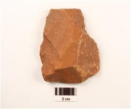 | Description / विवरण | Flake made on end struck chert flake, flake scars on dorsal surface, cortex visible on surface, positive bulb on ventral surface. |