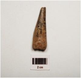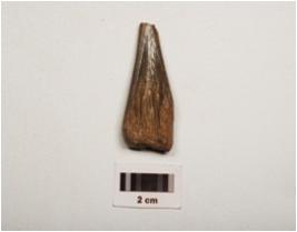 | Description / विवरण | Fragment of a horn point, polished surface with thick and broad end, broken from pointed end and gray in colour. |