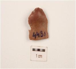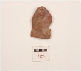 | Description / विवरण | Chert blade, distal end broken, prominent bulb with striking platform, blade scar on dorsal surface, use-wear marks on both working edge. |
