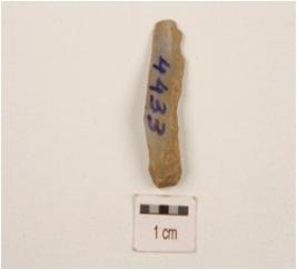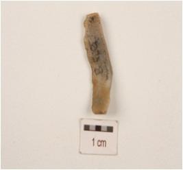 | Description / विवरण | Parallel sided chalcedony blade, intact, bulb absent striking platform visible, curved distal end, use-wear marks on both working edge. |
