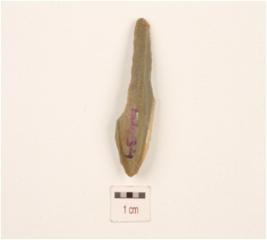 | Description / विवरण | Flake made on chert flake, blade scars on surface, use-wear marks on edges. |