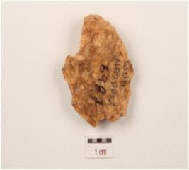 | Description / विवरण | Flake made on end struck chert flake, cortex with flake scars on dorsal surface. |