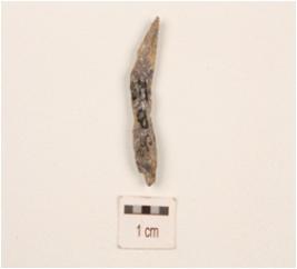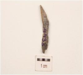 | Description / विवरण | Chert blade, striking platform visible, bulb absent, use-wear marks on both working edges. |