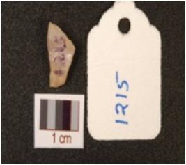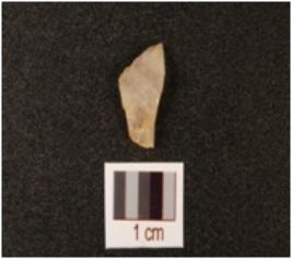 | Description / विवरण | Flake with a bulb of percussion on one side and a striking platform visible, triangular shape, without any working edge visible. |