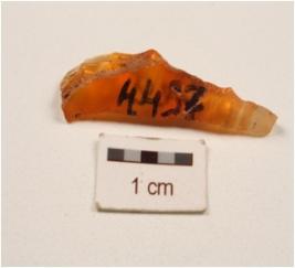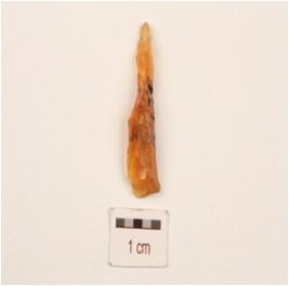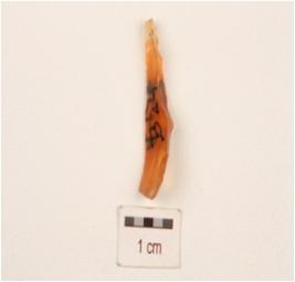 | Description / विवरण | Carnelian blade, diffused bulb with striking platform, use-wear marks on both working edge, flake scars on dorsal surface. |
