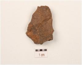 | Description / विवरण | Flake made on side struck chert flake, flake scars on dorsal surface. |