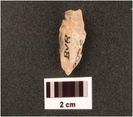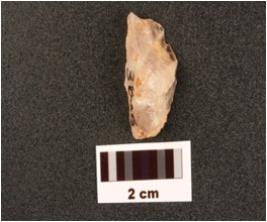 | Description / विवरण | Quartz flake, one convex surface, two flakings on another surface. |