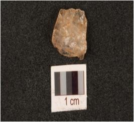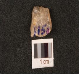 | Description / विवरण | A blade fragment made on quartz, prepared platform, used wear marks on working edges. |