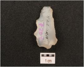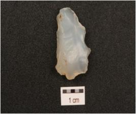 | Description / विवरण | Flake made on chert, flake scars on both surface, rectangular in section. |