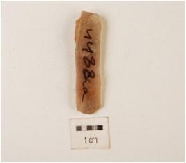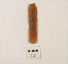 | Description / विवरण | A blade made on chalcedony, use wear mark and one ridge on dorsal side surface, rectangular section, bulb difussed. |