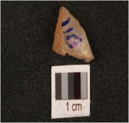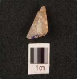 | Description / विवरण | A blade fragment made on quartz, smooth surface, used wear marks on working edge. |