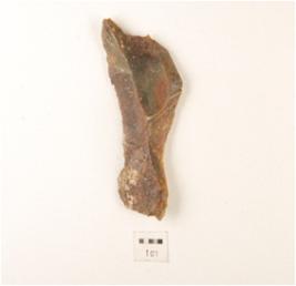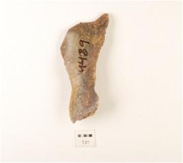 | Description / विवरण | Utilizite flake made on chert, flake scars on dorsal side, shark cutting edge, proximal end on bulb, triangular section, contex surface. |