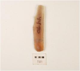 | Description / विवरण | A blade made on chalcedony, retouched cutting edge, ridges on dorsal side surface, rectangular section, proximal end on bulb. |