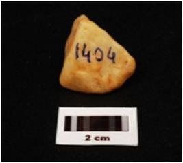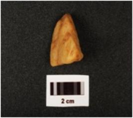 | Description / विवरण | A modified quartz pebble stone with crack marks on smooth surface and triangular in shape. |